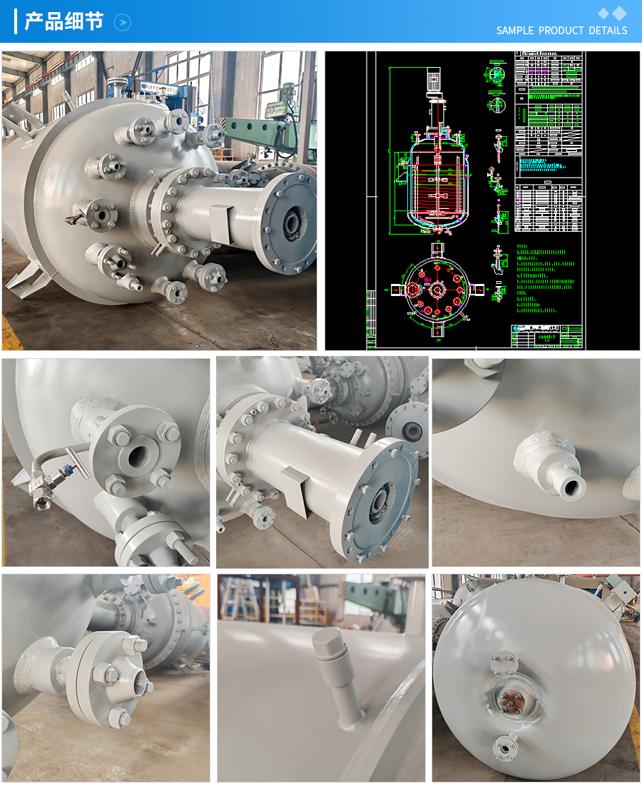 主要材料 釜體材料主要采用不銹鋼與碳鋼復(fù)合材質(zhì) S30408(304)+Q345R、S31603(316L) +Q345R、S32168(321)+Q345R, 也可是純不銹鋼材質(zhì),并可根據(jù)不同介質(zhì)要求制作鈦材、鎳材、鋯材、哈氏合金、蒙耐爾合金等復(fù)合材質(zhì)反應(yīng)釜,也可根據(jù)客戶要求主要材料噴涂四氟PTFE/PPL。