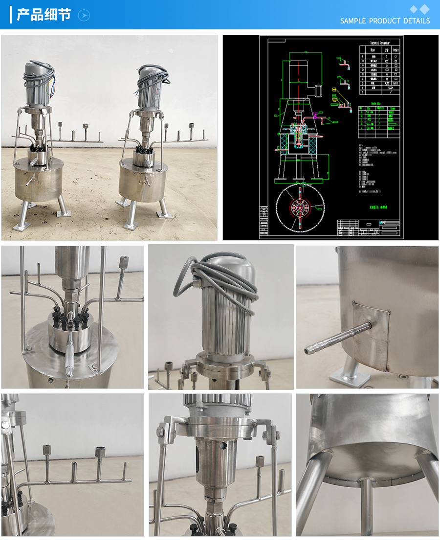 攪拌軸 采用耐磨不銹鋼軸承,適合高轉(zhuǎn)速、低粘度物料的攪拌